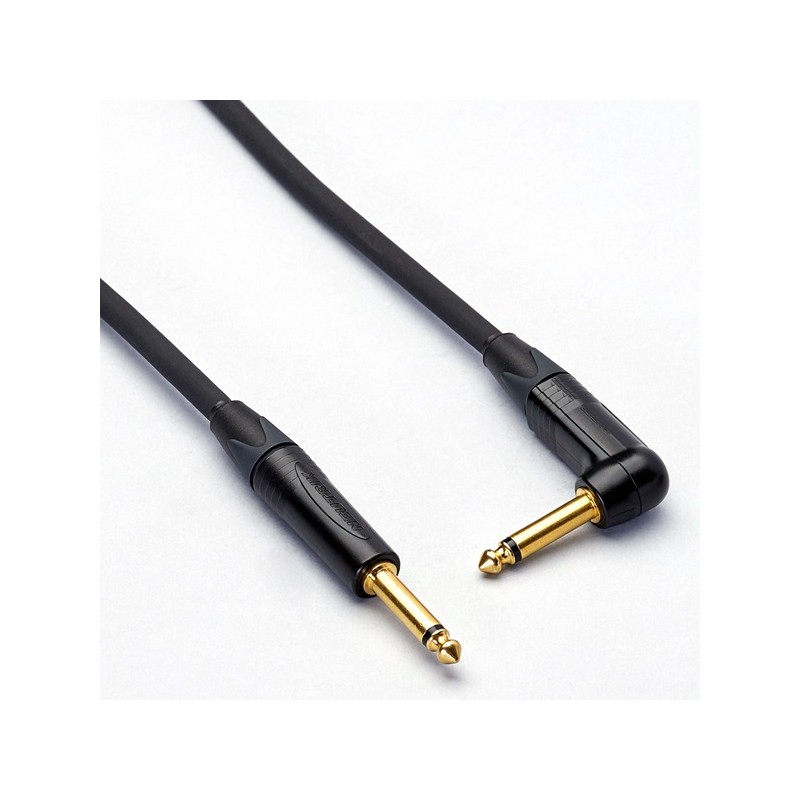 Cavo schermato serie Alpha per strumenti musicali, realizzato con un jack Neutrik mono da 6,3 mm e un jack Neutrik mono da 6,3 mm angolato a 90°.