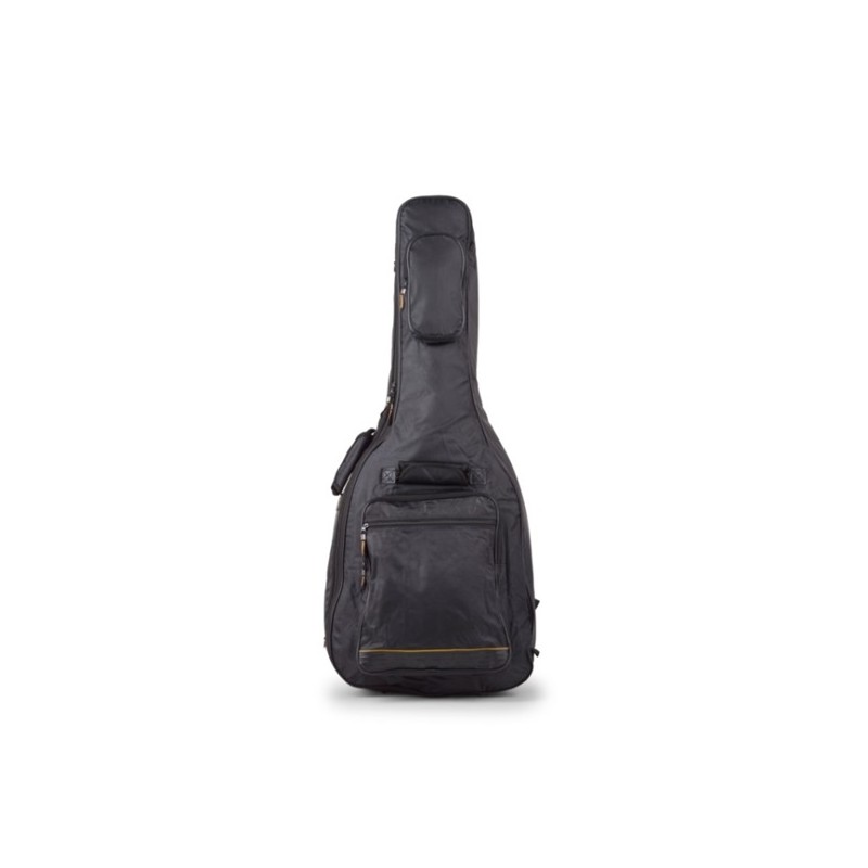 RB 20509 B - Borsa imbottita per chitarra acustica - Serie Deluxe - Realizzata in robusto tessuto RokTex resistente all'acqua - Imbottitura da 20mm - Zip a 2 vie larga 0,8cm con cerniera in nylon - Fodera interna in nylon nero - Equipaggiata con Guitar-Saving-System (cuscino extra protettivo in corrispondenza dello strap-lock) e Neck-Saving-System (cuscino extra protettivo e laccio di sicurezza con velcro per il fissaggio del manico) per la massima protezione - Toppe protettive RokTex in corrispondenza delle meccaniche e del ponte - Ampia tasca anteriore con cerniera e 2 scomparti (in grado di alloggiare il supporto per chitarra RockStand Worwei) - Tasca esterna con cerniera in corrispondenza della paletta - Tre maniglie per il trasporto imbottite (sul lato, sulla parte anteriore e su quella posteriore) - 2 spallacci da 50mm di larghezza per il trasporto a spalle, imbottiti e regolabili con hardware in metallo - Parte posteriore ergonomica e imbottita - Tracolla aggiuntiva rimovibile, regolabile e imbottita con hardware in metallo - Anello di metallo per appendere la borsa - Fondo rinforzato in PVC con piedini in metallo - Colore: nero - Altezza interna: 115,0cm - Larghezza interna: 43,0cm - Profondità interna: 15,0cm - Lunghezza massima del corpo: 60,0cm - Peso: 1,9kg.